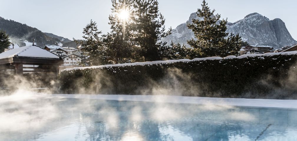 Il giardino soleggiato, la piscina riscaldata all’aperto e due saune con vista sulle Dolomiti – patrimonio UNESCO – rendono il vostro soggiorno un’esperienza di puro benessere.